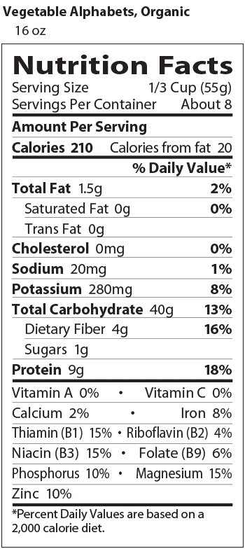 Organic VEGETABLE ALPHABETS - 6/ 16 oz Boxes
